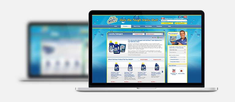 More than 15 years ago scientists came up with a way to harness the power of oxygen to clean better than ever before. That breakthrough was OxiClean Versatile Stain Remover, a cleaning sensation that virtually revolutionized the industry. Today, there are several OxiClean products to fit consumer needs and all have one thing in common – tough stain removal! To support the brands continued a growth, a multi-brand digital presence was created.